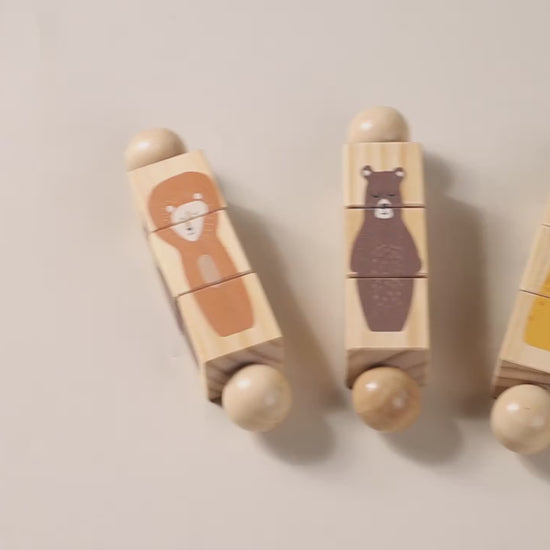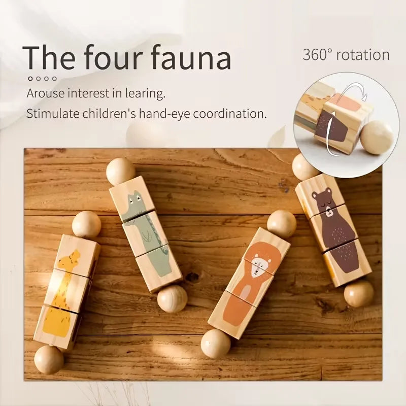 Educational Wooden Animal Shape Matching Toy with Rotating Rattles